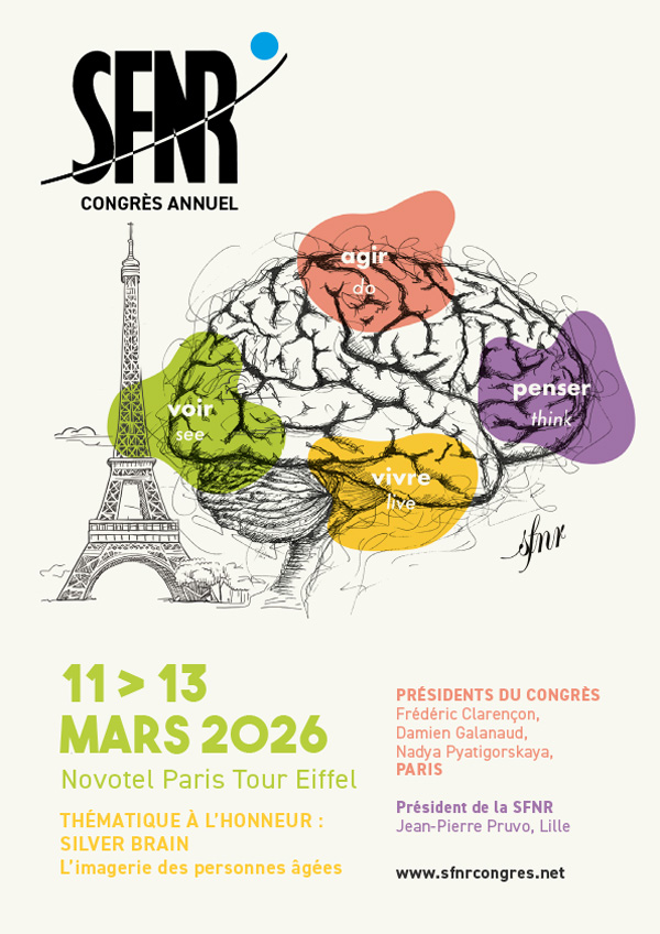 C’est un grand plaisir de vous annoncer que les inscriptions sont ouvertes pour le 53ème congrès de la SFNR qui se déroulera du 11 au 13 mars 2026 au Novotel Paris Tour Eiffel****, et qui sera présidé par Frédéric Clarençon, Damien Galanaud, Nadya Pyatigorskaya.